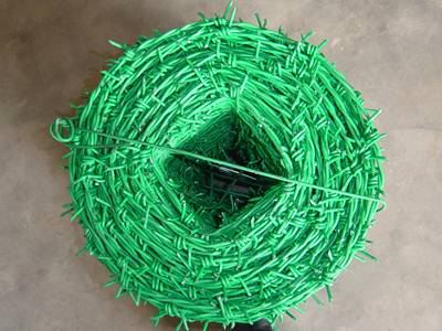 - سیم خاردار با روکش PVC/PE. سیم فولادی کم کربن یا سیم فولادی گالوانیزه با PVC یا PE وصل می شود و سیم روکش شده PVC/PE را تشکیل می دهد. سیم فولادی با روکش PVC همچنین می تواند عملکرد عالی در برابر خوردگی و زنگ زدگی را ارائه دهد، به ویژه سیم فولادی با روکش PVC با سیم داخلی گالوانیزه، که می تواند محافظت مضاعف برای سیم خاردار ارائه دهد. سیم خاردار روکش پی وی سی را می توان به رنگ های مختلف برای تزئین مکان ها و ترکیب با محیط های اطراف ساخت. پرکاربردترین رنگ سبز است، ما همچنین می توانیم هر رنگی را بر اساس رنگ های RAL و نیازهای شما سفارشی کنیم.